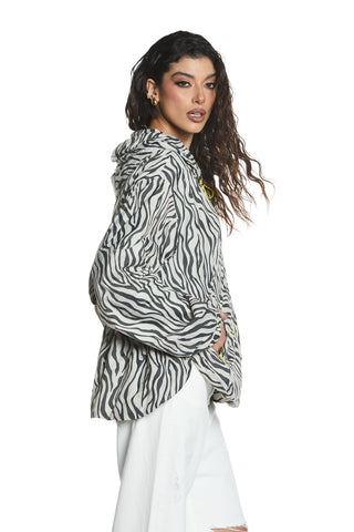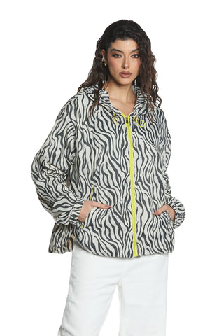 Giubbino BRAZI manica lunga con elastico più cappuccio più coulisse più tasche asimmet.fantasia zebrata