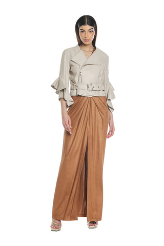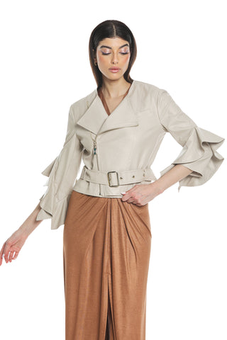 Giubbino CASSITERITE man.3/4 rouches zip trasv. più cintura fibbia ecopelle