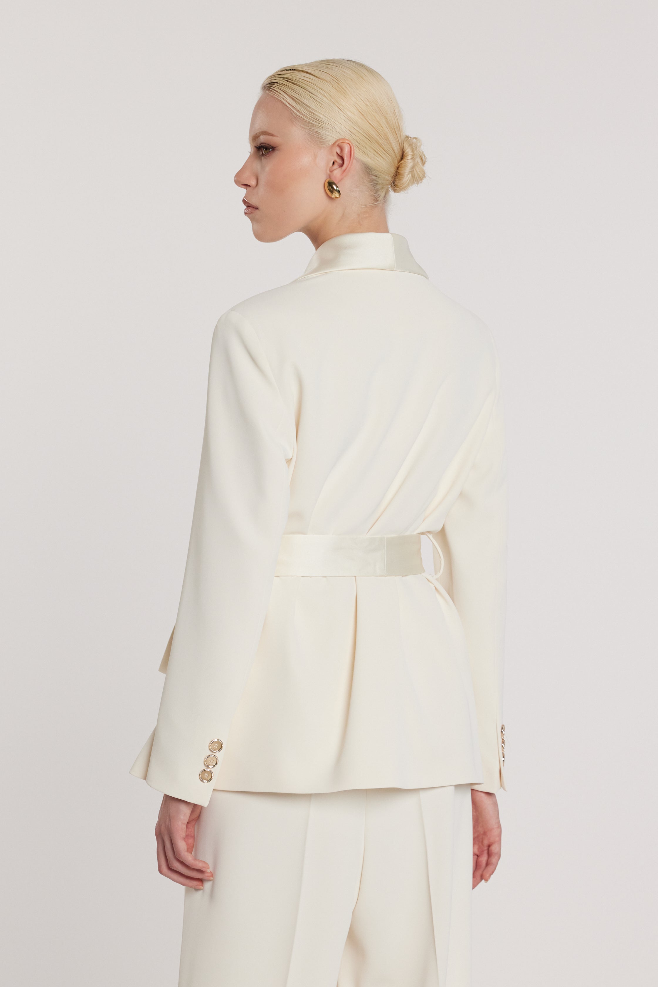 Giacca elegante e femminile, caratterizzata da maniche lunghe e cintura che valorizza la vita. Perfetta per definire la silhouette con stile, questo capo è ideale per look sofisticati da giorno e outfit ricercati da sera.