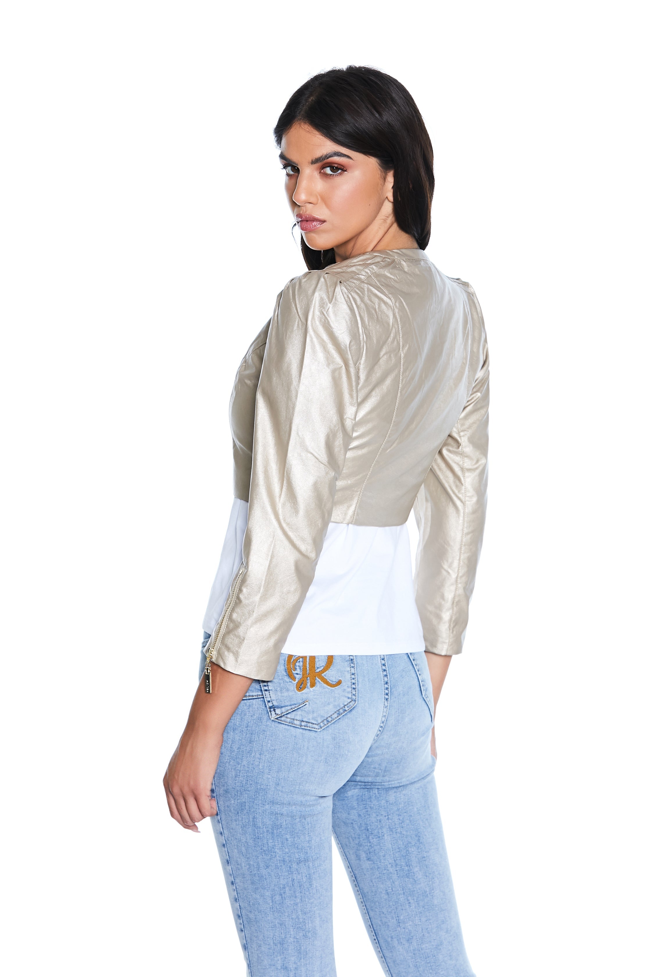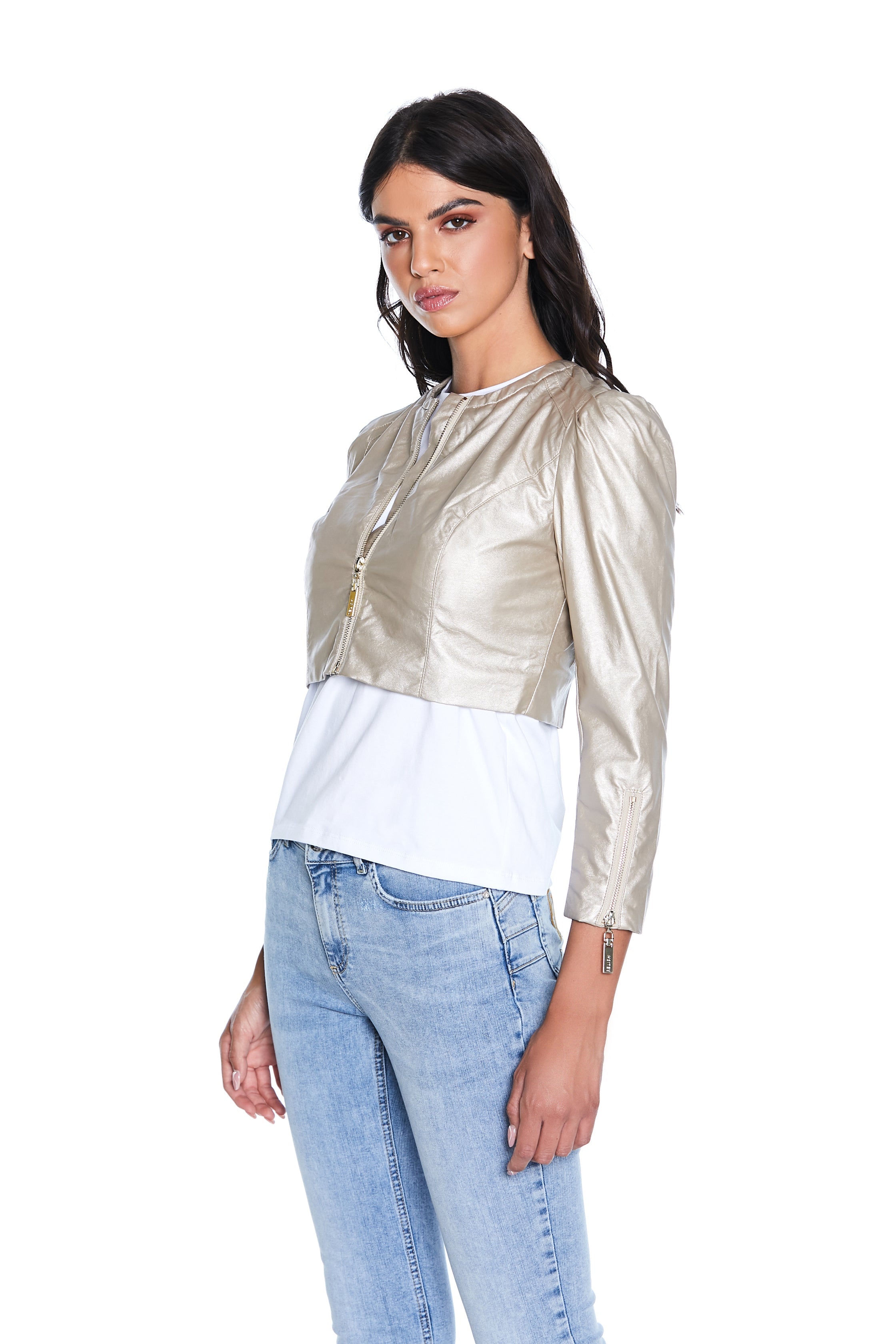 Giubbino MUISC corto manica 7/8 con impunture spalle più zip ecopelle
