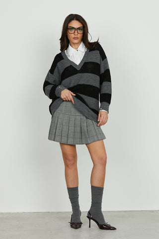 Gonna ESSENT corta con patte più bottoni più pieghe gessato