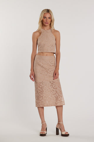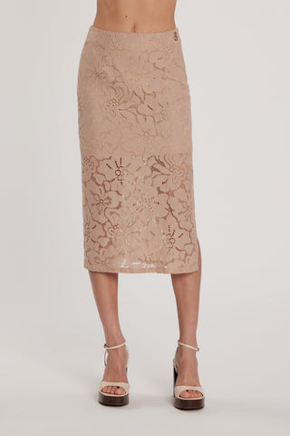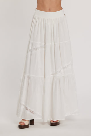 Gonna NELOPE lunga vita alta con elastico più balze più inserti pizzo