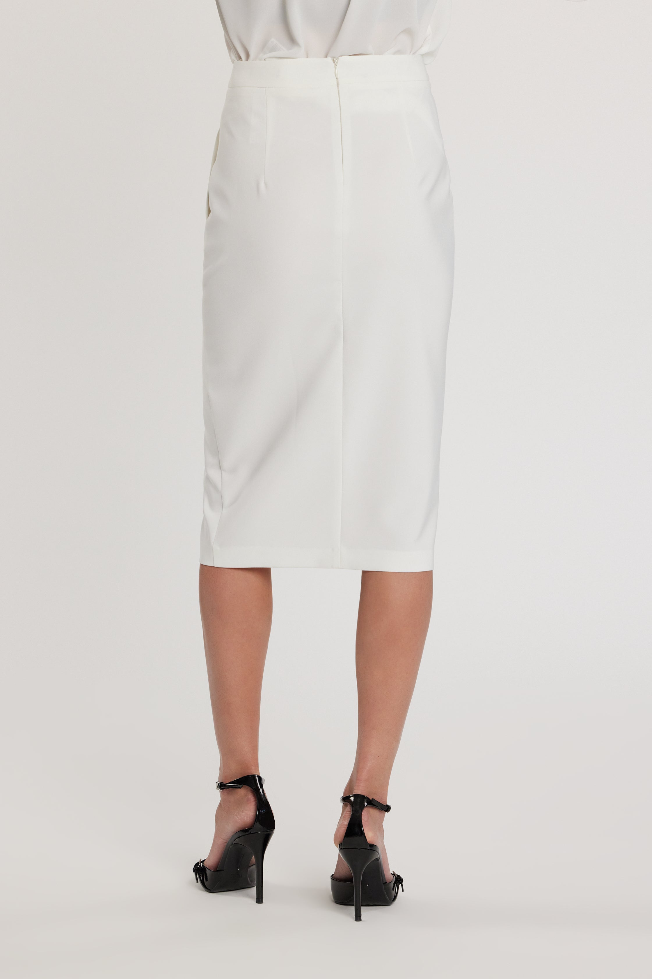 Longuette Vadim con tasche francesi e spacco centrale, un modello elegante e raffinato. Lo spacco centrale aggiunge movimento e sensualità discreta, mentre le tasche valorizzano la linea con charme couture.