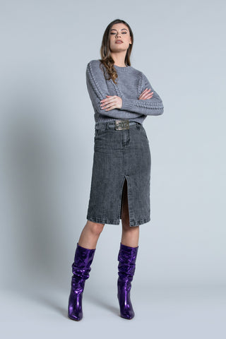 Longuette ALTIRESA vita alta con spacchi più cintura logo denim black