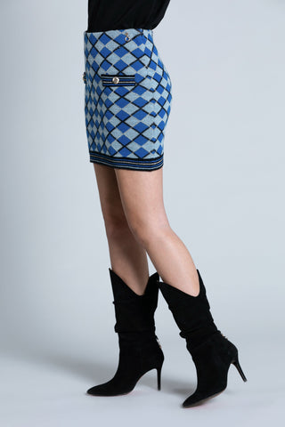 Gonna LINA corta con patte più bott.oro rombi multicolor più lurex