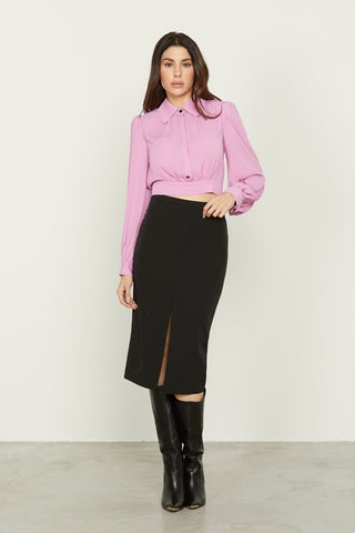 Longuette ALTERY vita alta con bustino ecopelle più doppio spacco sfrang.denim