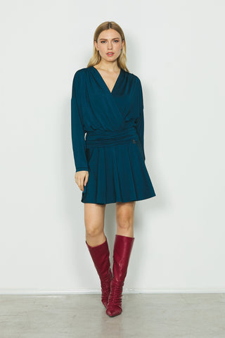 Abito VERBENA corto manica lunga sc.incrocio con fascia più gonna campana