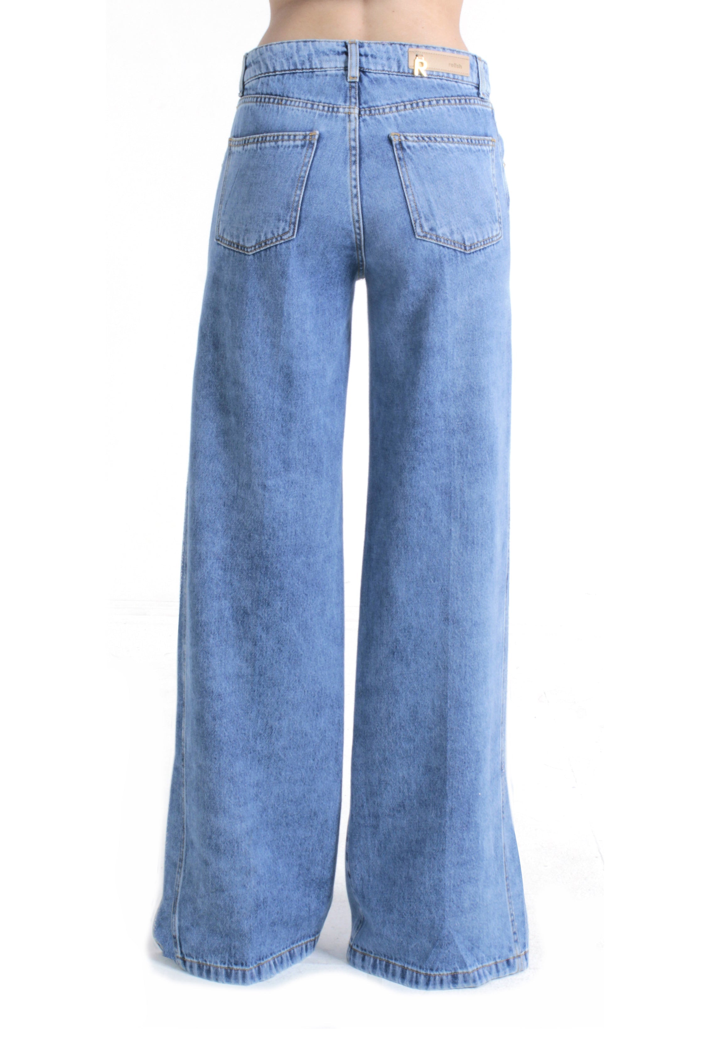 Pantalone ELLESPACK_20_SNZ vita media con spacchi laterali straight fit denim blu