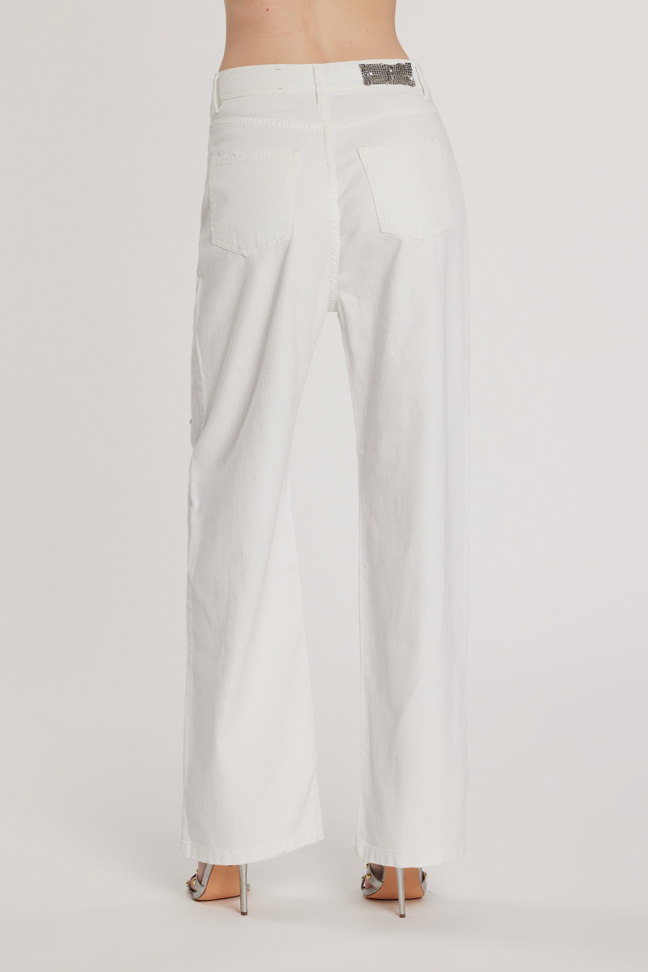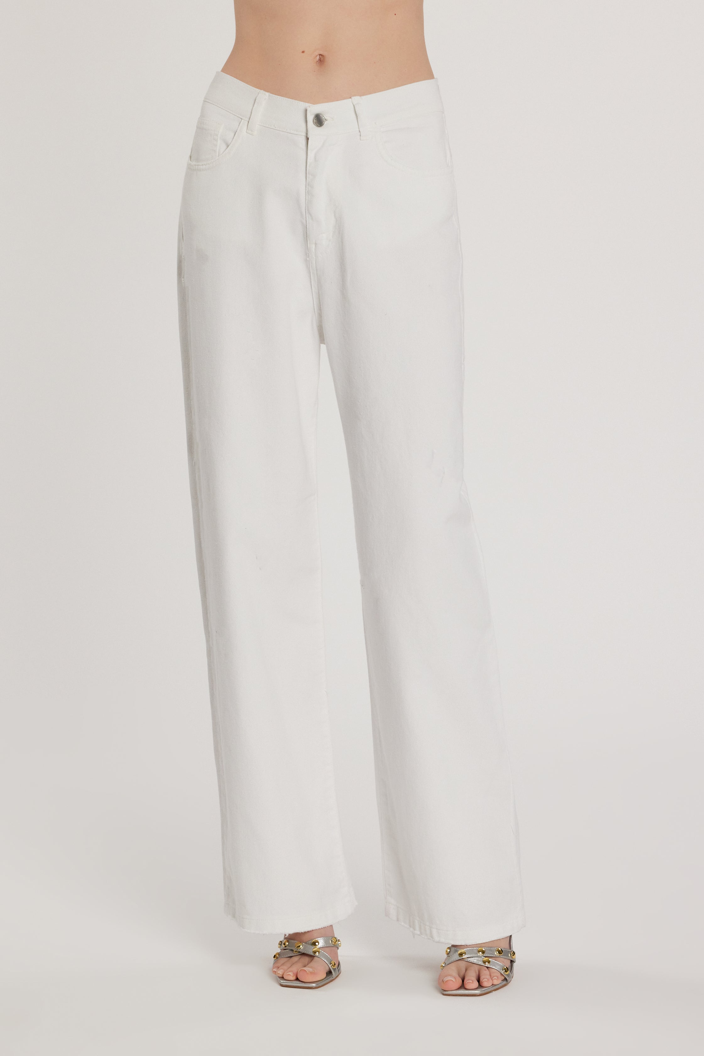 Pantalone Giselle_15_Snz vita media cinque tasche, loose fit in bull denim, un capo confortevole e di carattere. Il fit ampio garantisce libertà di movimento, mentre i dettagli sartoriali e la vestibilità over lo rendono perfetto per outfit casual chic di forte impatto.