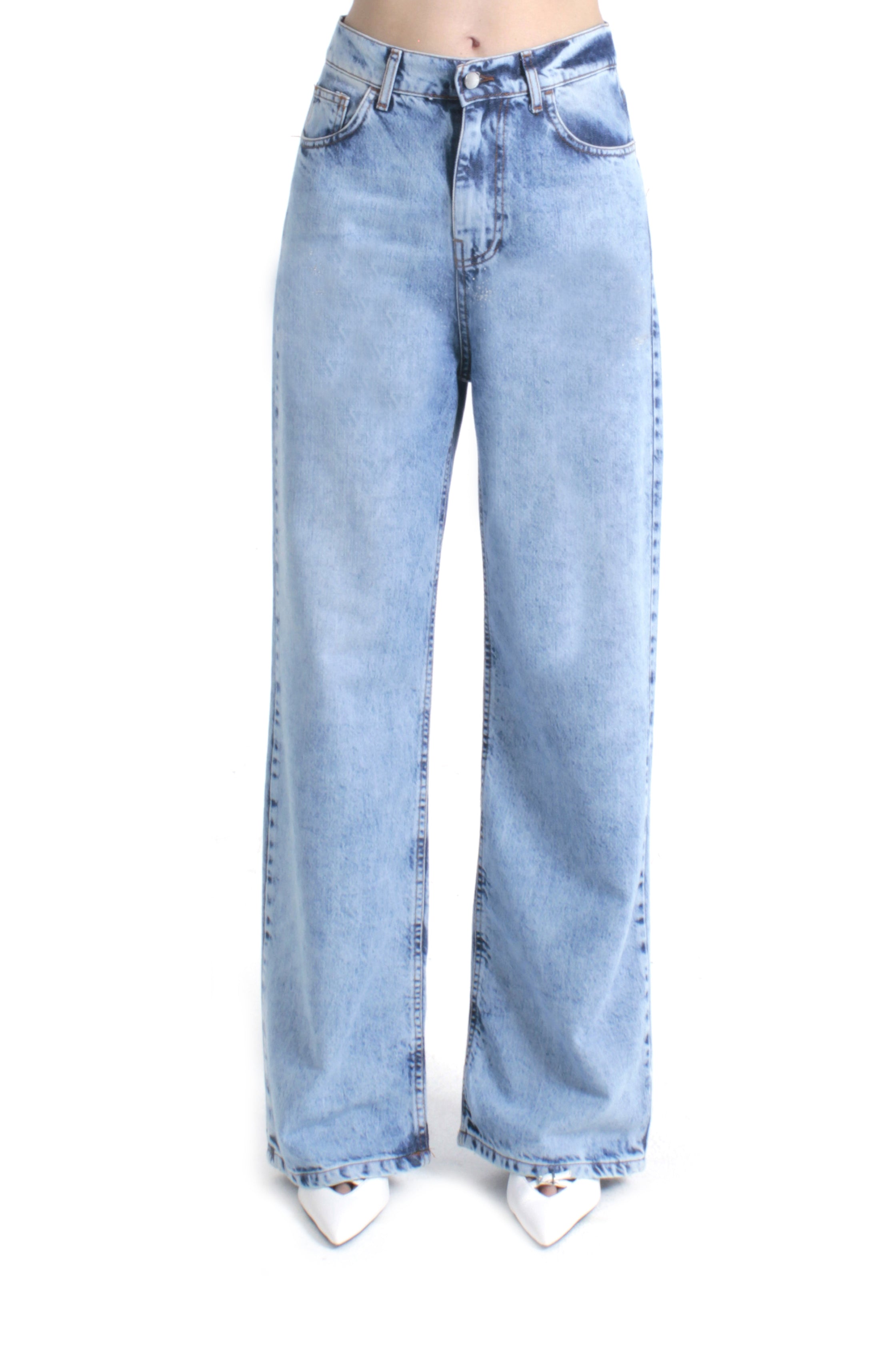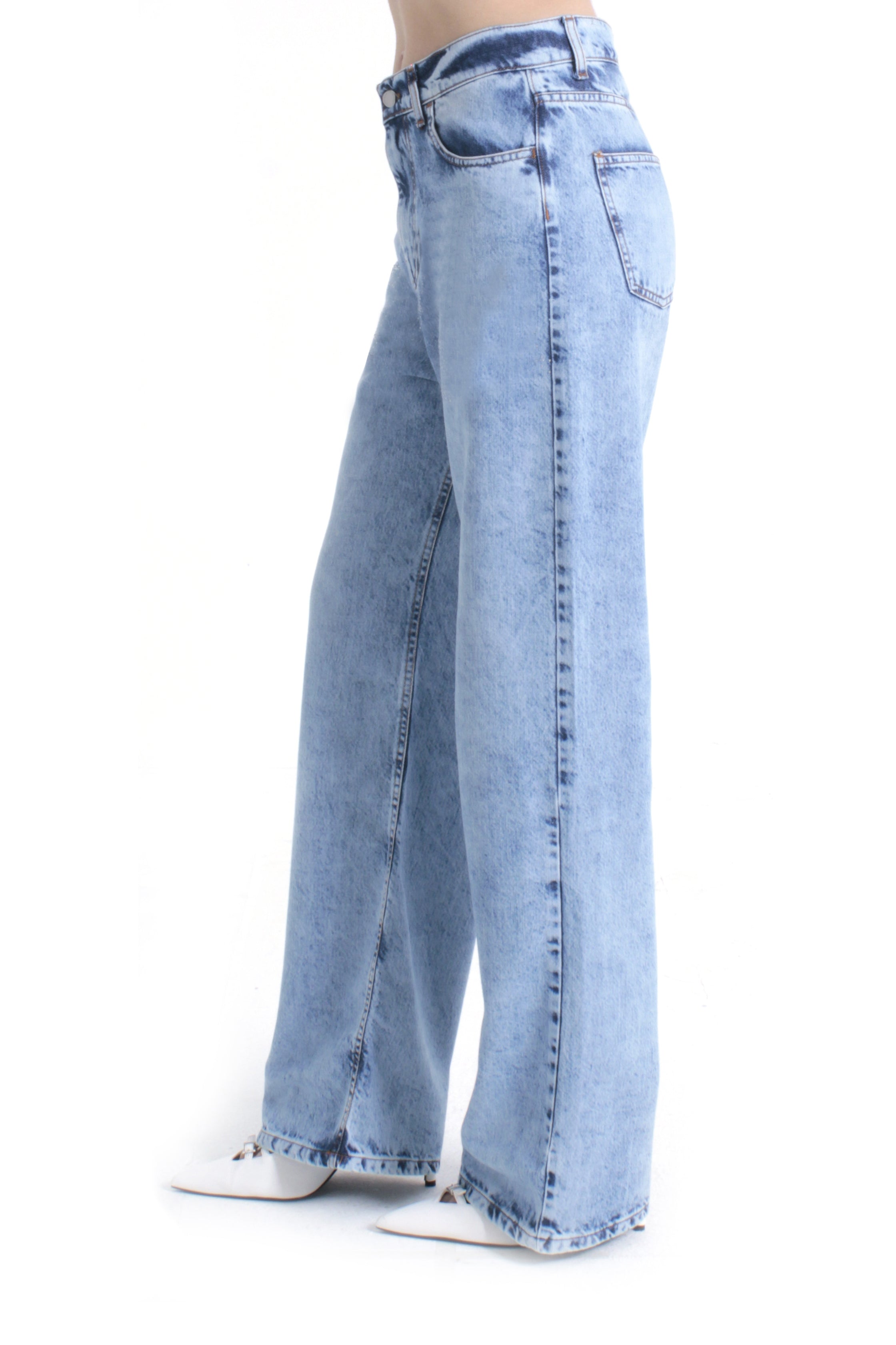 Pantalone Giselle_23_Snz vita media cinque tasche, loose fit in denim blu, un modello versatile e moderno. La vestibilità over e i dettagli sartoriali valorizzano la figura, rendendolo perfetto per look day to night contemporanei e femminili.