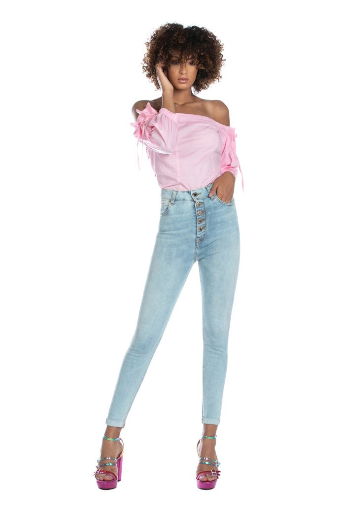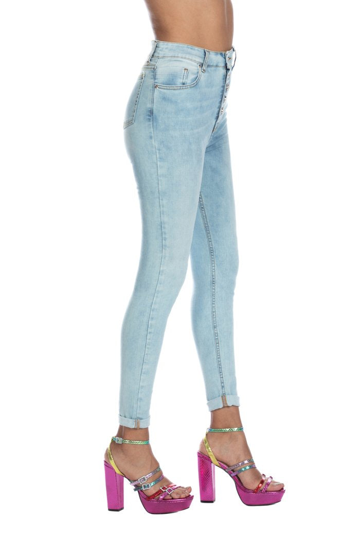 Jeans COLLI vita alta con bottoni più 5 tasche denim chiaro