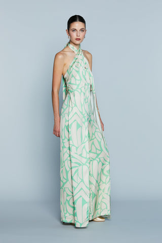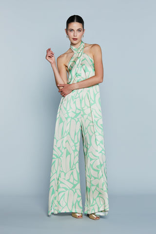 Tuta MIHAKO vita alta palazzo top scollato con aperture più accessorio