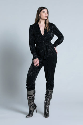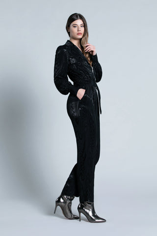 Jumpsuit MUSTAGH manica lunga colletto con arric. Più cintura ap.dietro plisse' lurex