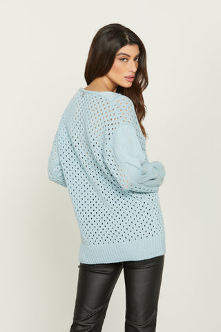 Il classico maglione a trecce tipico della stagione invernale si rinnova con lavorazione a rete e spacchi grazie al modello INFERI.