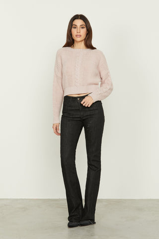Maglia INFERI manica lunga scollo v con lavorazione trecce più rete più spacco