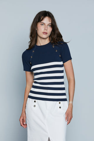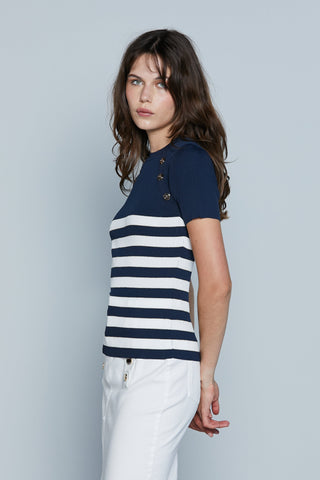 Maglia GELTRU' M/M con Inserto Bottoni Righe più Lurex Costina