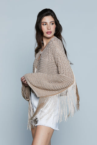 Cardigan MOSTOLES M/L Ampia con Frange L.Crochet più Lurex