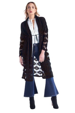 Cardigan lungo con coulisse in vita e punto traforo ISSOM