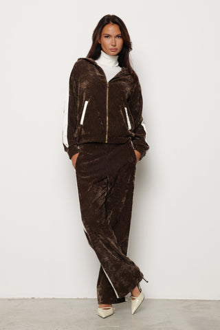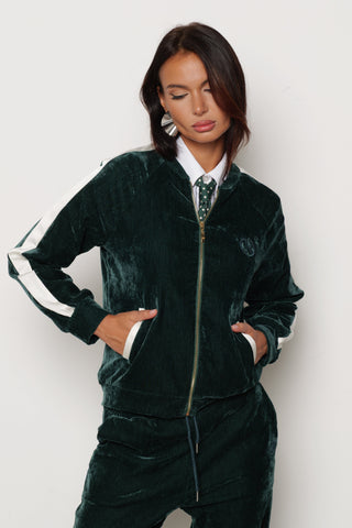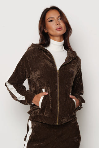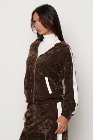 Felpa GIUFFRE in velluto con cappuccio più ricamo logo più bande laterali in raso