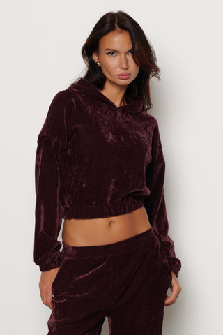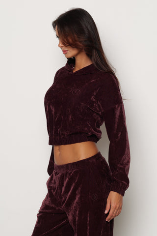 Felpa LUXY manica lunga Corta con Cappuccio più Ricamo Logo più Arricci Velluto