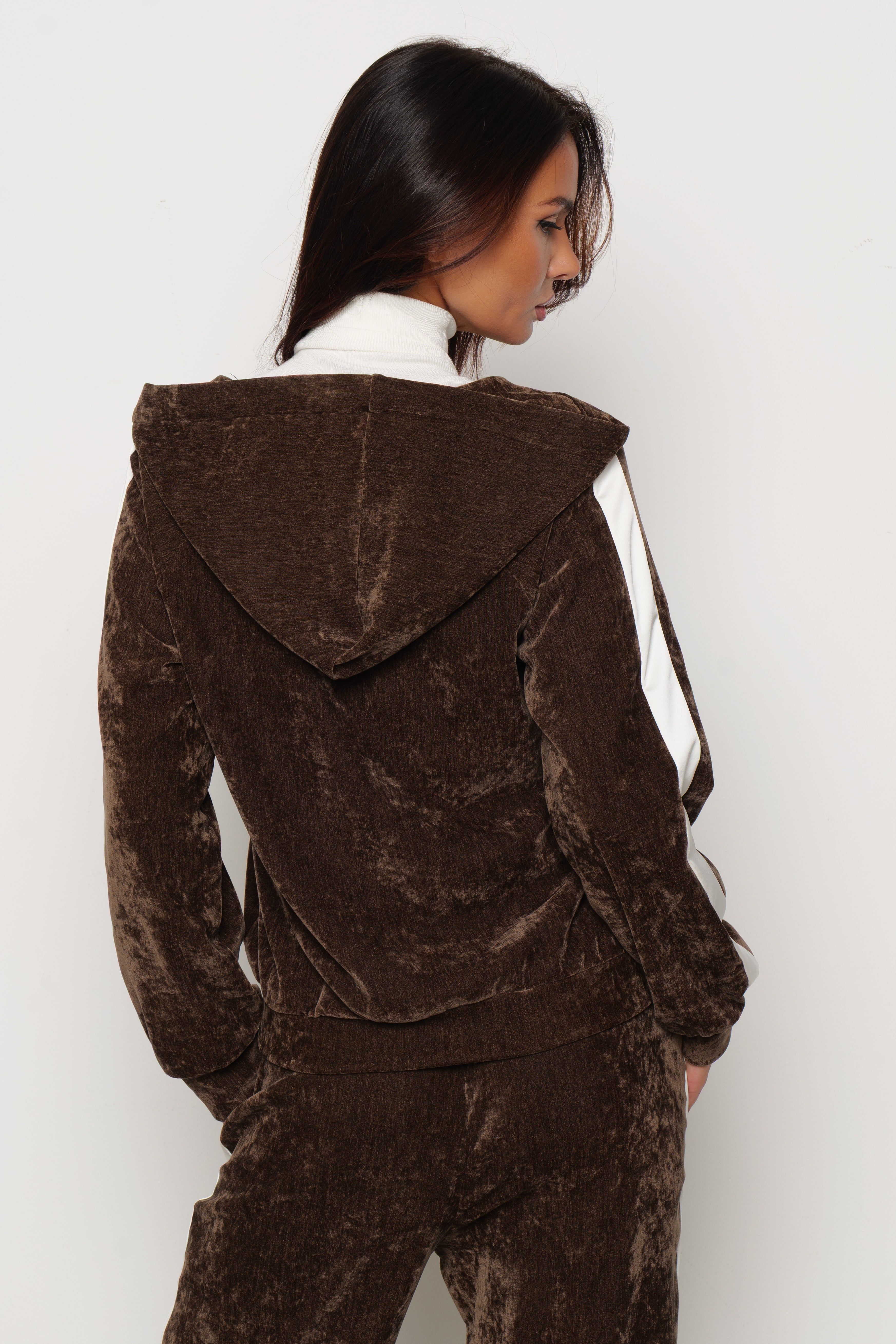 Felpa GIUFFRE in velluto con cappuccio più ricamo logo più bande laterali in raso