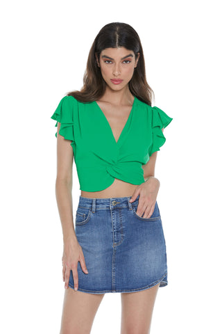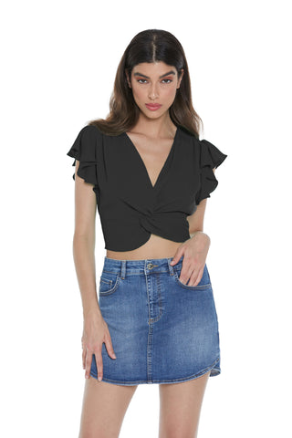 Blusa SAMA corta mezza manica rouches scollo incrocio con fusciacca più arricci