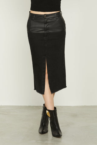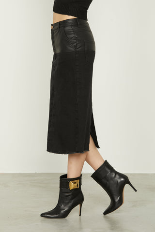 Longuette ALTERY vita alta con bustino ecopelle più doppio spacco sfrang.denim
