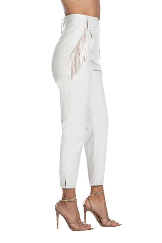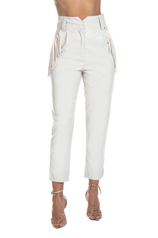 Panta LUCANIA in ecopelle vita media con tasche francesi più frange