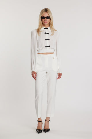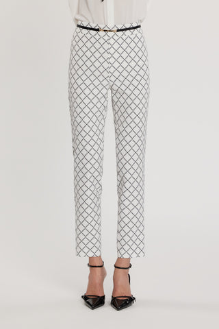 Pantalone CLAUDIETTE vita alta con dettaglio cintura più stampa logo all over