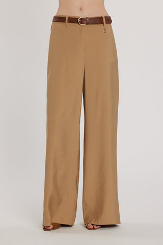Pantalone ROJER vita alta palazzo con cintura più passante logo più pieghe