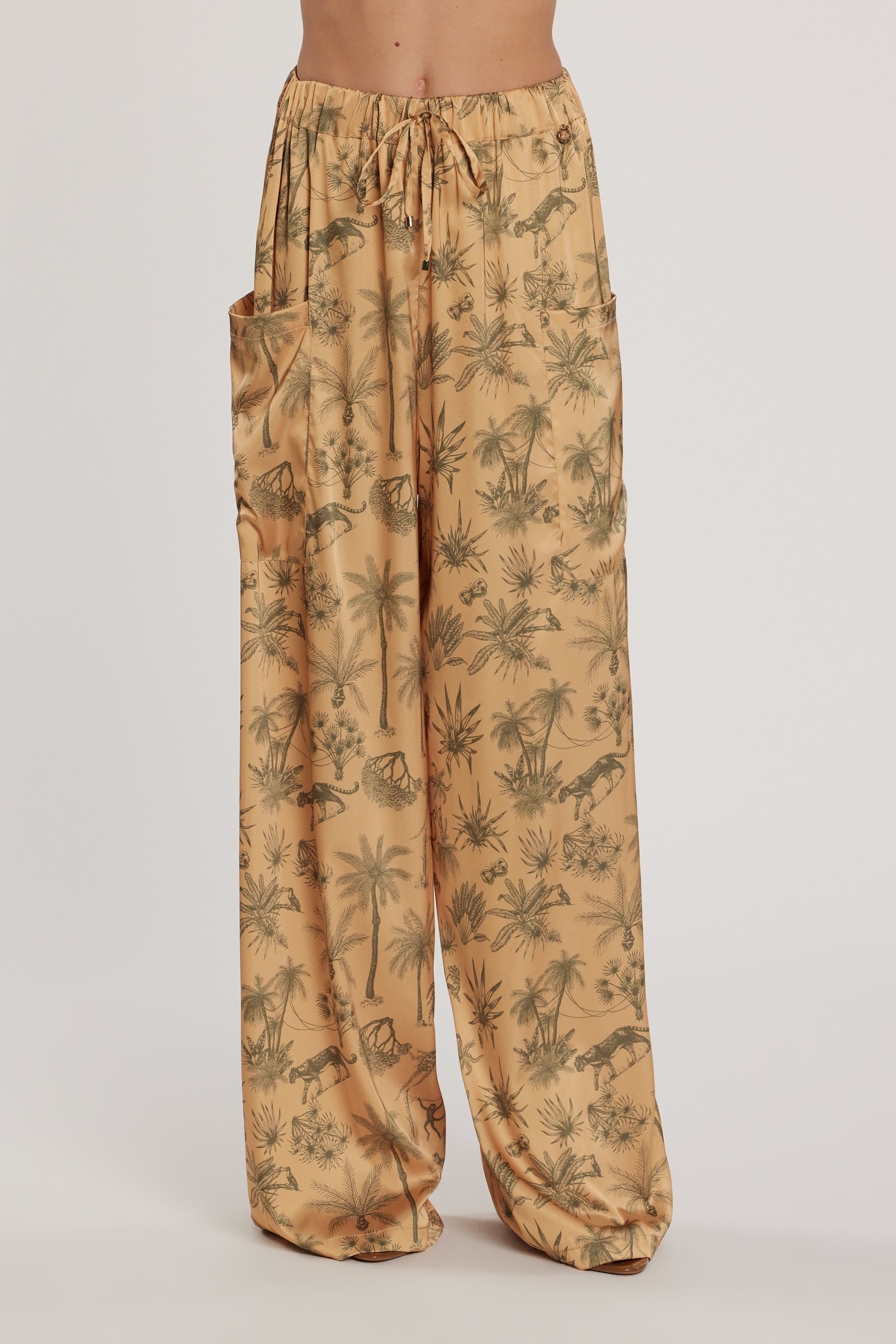 Pantalone SCARLETT vita alta palazzo con coulisse più tasconi fantasia tropical