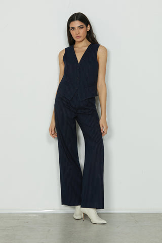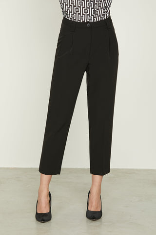 Panta ELMY vita alta palazzo crop con impunture più martingala