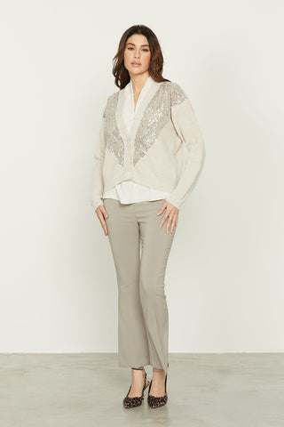 Panta BENEDETTA vita alta zampa con applicazione traforata strass