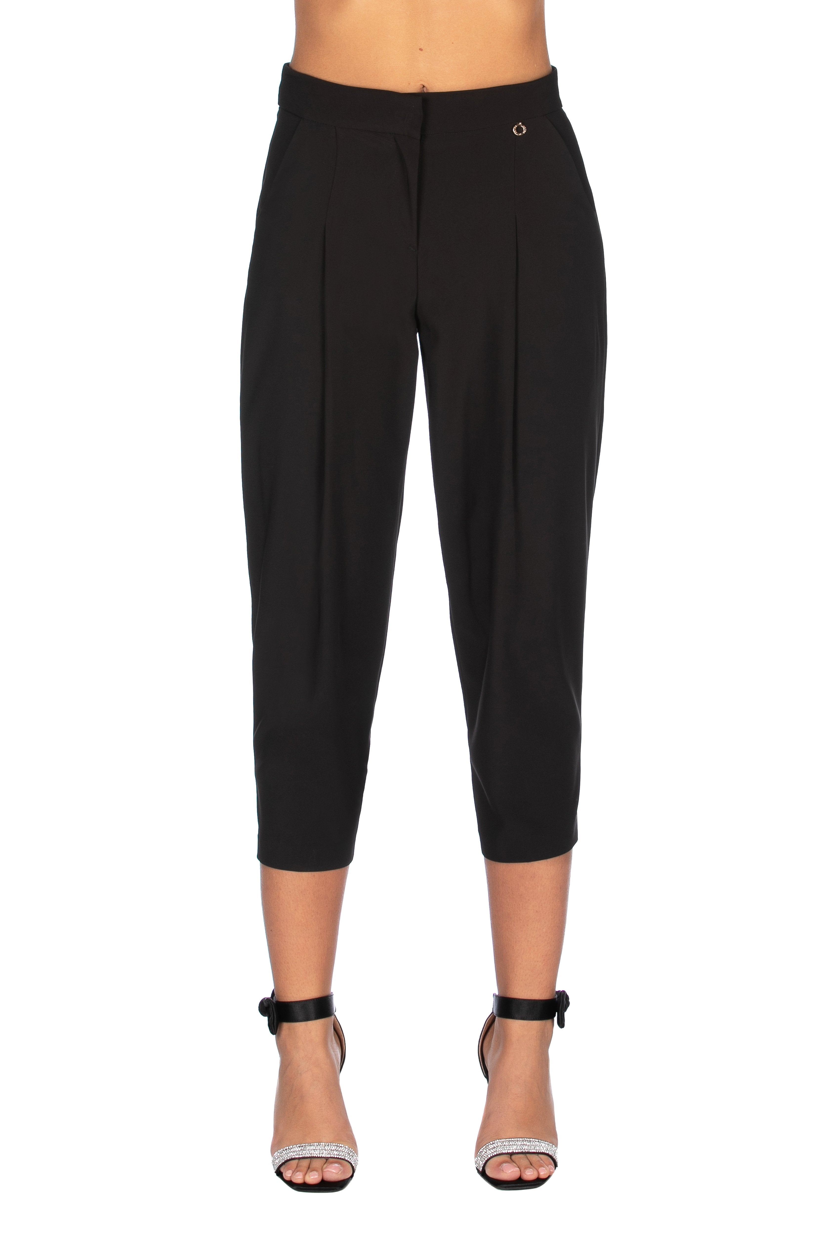 Questo modello di pantalone capri è confezionato con pinces che cadono morbide lungo tutta la gamba e permettono una vestibilità molto confortevole.