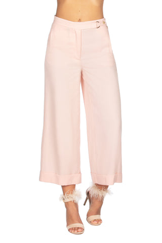 Pantalone MARKHAM vita alta con pinces più cintura più tasche ecopelle