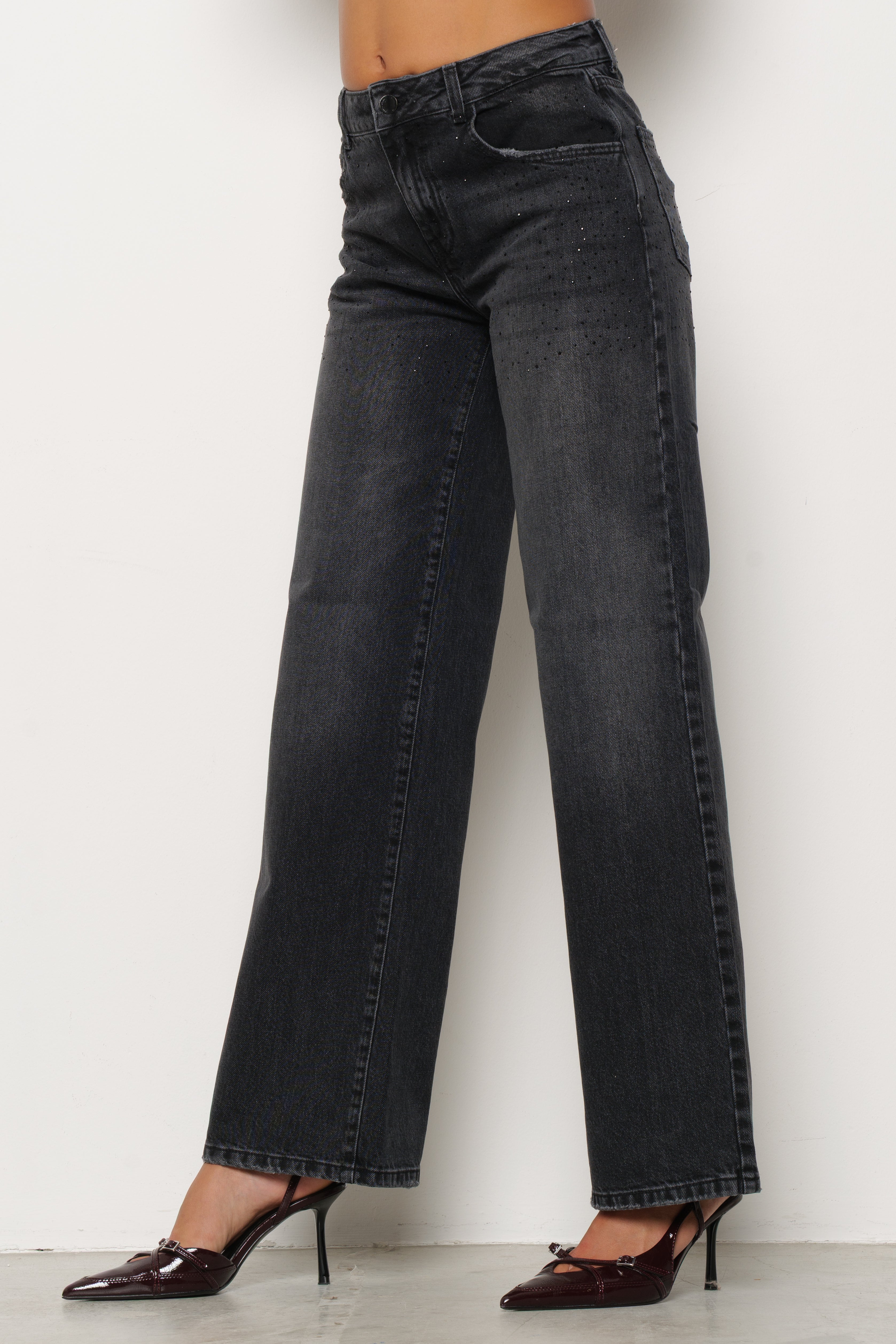 Jeans ELLELONG_31 a vita media dal taglio Straight Fit, con classico design a 5 tasche e dettagli con strass che aggiungono un tocco di luce e femminilità. Linea dritta e pulita, perfetta per un look casual con un accento glam.