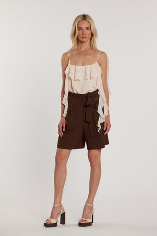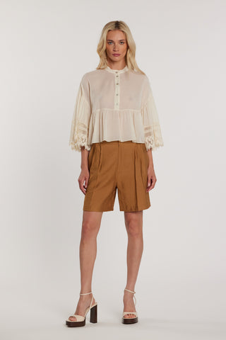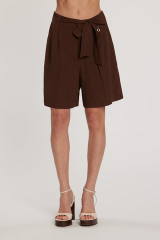 Bermuda CHAMAT vita alta con elastico più cintura più taglio risvolto