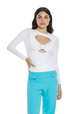 T-shirt BERNICE manica lunga con apertura più fibbia cuore con strass più logo