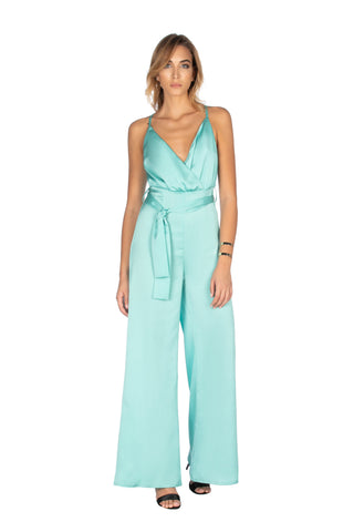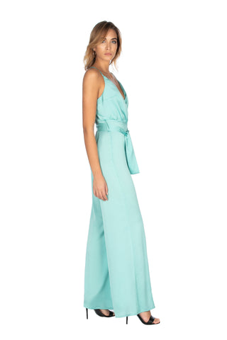 Tuta NEVERMAI senza maniche scollo a v incrocio con cintura palazzo