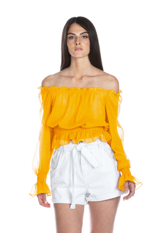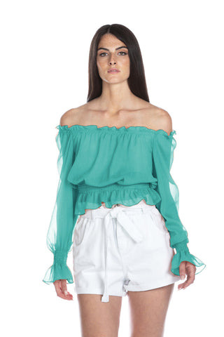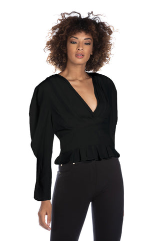 Blusa SHISPARE manica lunga a palloncino con pieghe scollo più fascia plisse'
