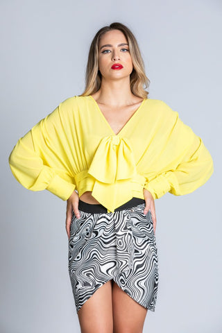 Blusa IFFIT corta manica lunga scollo v con fiocco con fondo plisse'