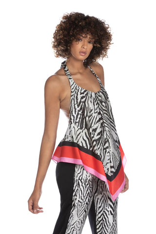 Top GAHINGA senza maniche scollo americana con laccetto schiena fantasia animalier