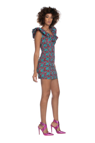Abito GRETUI corto mezza manica aletta con rouches fantasia fiori