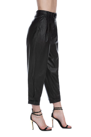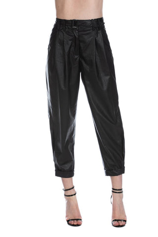 Pantalone MARKHAM vita alta con pinces più cintura più tasche ecopelle