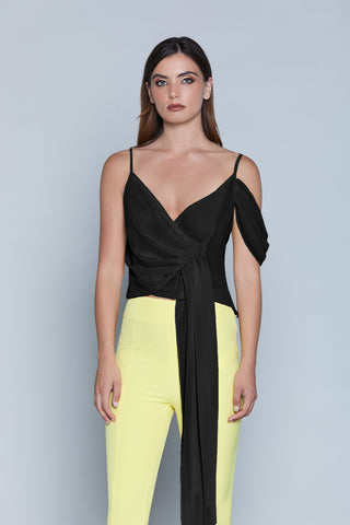 Top JASMINE corto monospalla mezza manica con pieghe più fusciacca