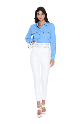 Pantalone DESERTFLOWER_BIS vita alta con impunture più zip al fondo