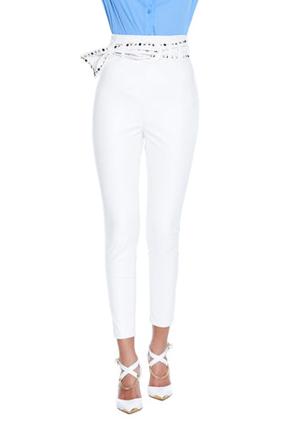 Panta LEGINGS vita alta con cintura più borchie ecopelle