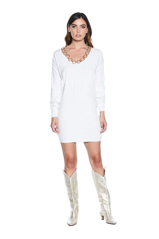 Abito RINGSTER corto manica lunga scollo ampio con applicazione anelli