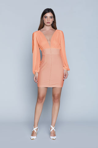 Abito ENEA corto manica lunga a sbuffo più arricci sc.v profondo più gonna con bottoncini