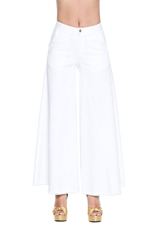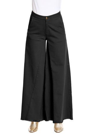 Panta ZUFFRON vita alta gamba ampia con tasche sfrangiato drill